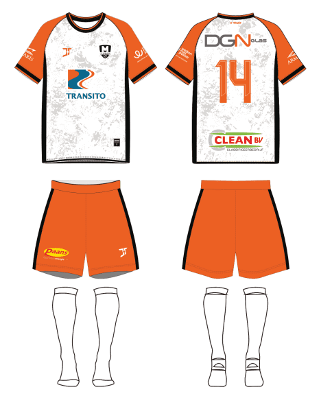 Het tenue wordt compleet geleverd met shirt, broek en sokken, zodat je direct klaar bent.